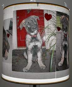 Finished lamp shade with pictures.  Buy the Blank Shade listed above to display your pictures. You can personalize your shade with window clings like the hearts.Print your picture using the suggested Epson Presentation Paper Matte finish 27 lb./4.9 mil thick paper shown above for best results.  Do not use gloss photo paper.Now just slide the picture between the shade and the clear plastic pane  that is wrapped around the shade.  Now you are ready to enjoy your pictures.  Pictures can be changed fast and easy.
