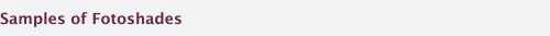 Here are some examples of different types of Fotoshades that have been made. This shows what all can be done with the shade. Many of the shades were done by other people and some with materials found around the house or bought at local stores. Watch this space for more examples.
