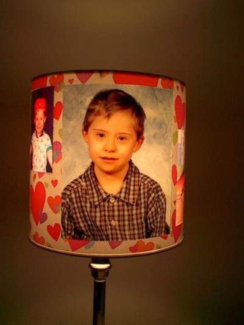 Here is a shade with pictures of my nephew. The large picture is a Duratrans 8" x 10" and the small pictures were done on a home printer surrounded by valentines wrapping paper.